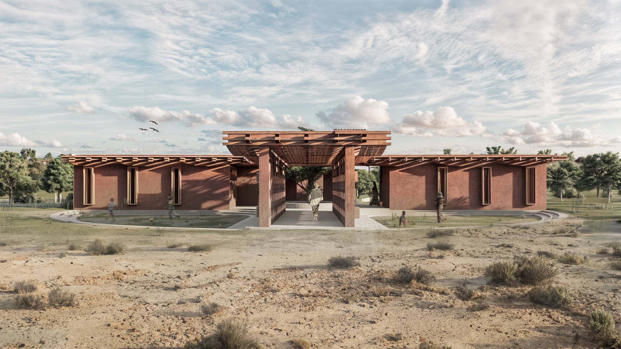 En Baghere, Senegal, diseñamos un edificio clínico innovador para niños refugiados como parte de un concurso liderado por Kaira Loro. Este proyecto se centra en crear un entorno seguro y estimulante para los niños, incorporando espacios para actividades recreativas y educativas utilizando materiales locales y métodos de construcción sostenibles.